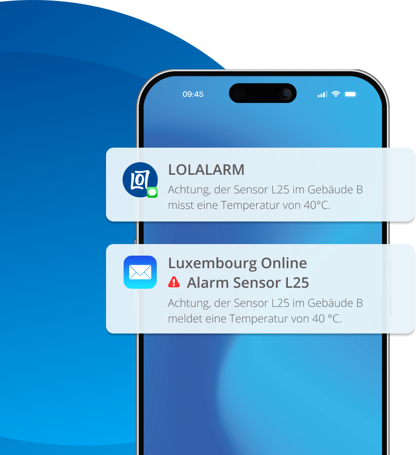 Sobald eine Anomalie festgestellt wird (abnormale Temperatur, Bewegung außerhalb der Geschäftszeiten, gewaltsames Öffnen usw.), löst LOLALARM automatisch Folgendes aus: